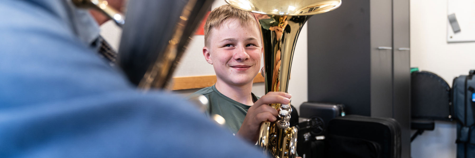 De fleste kender nok mest trompeten, men der er en hel familie af messinginstrumenter: Trompet, althorn, waldhorn, bryton, trækbasun, euphonium og tuba. Det er ikke altid lettest at begynde på trompet, så det er en god idé i samråd med messinglæreren at prøve de forskellige muligheder og så finde det messinginstrument, som passer bedst til lige netop dig.