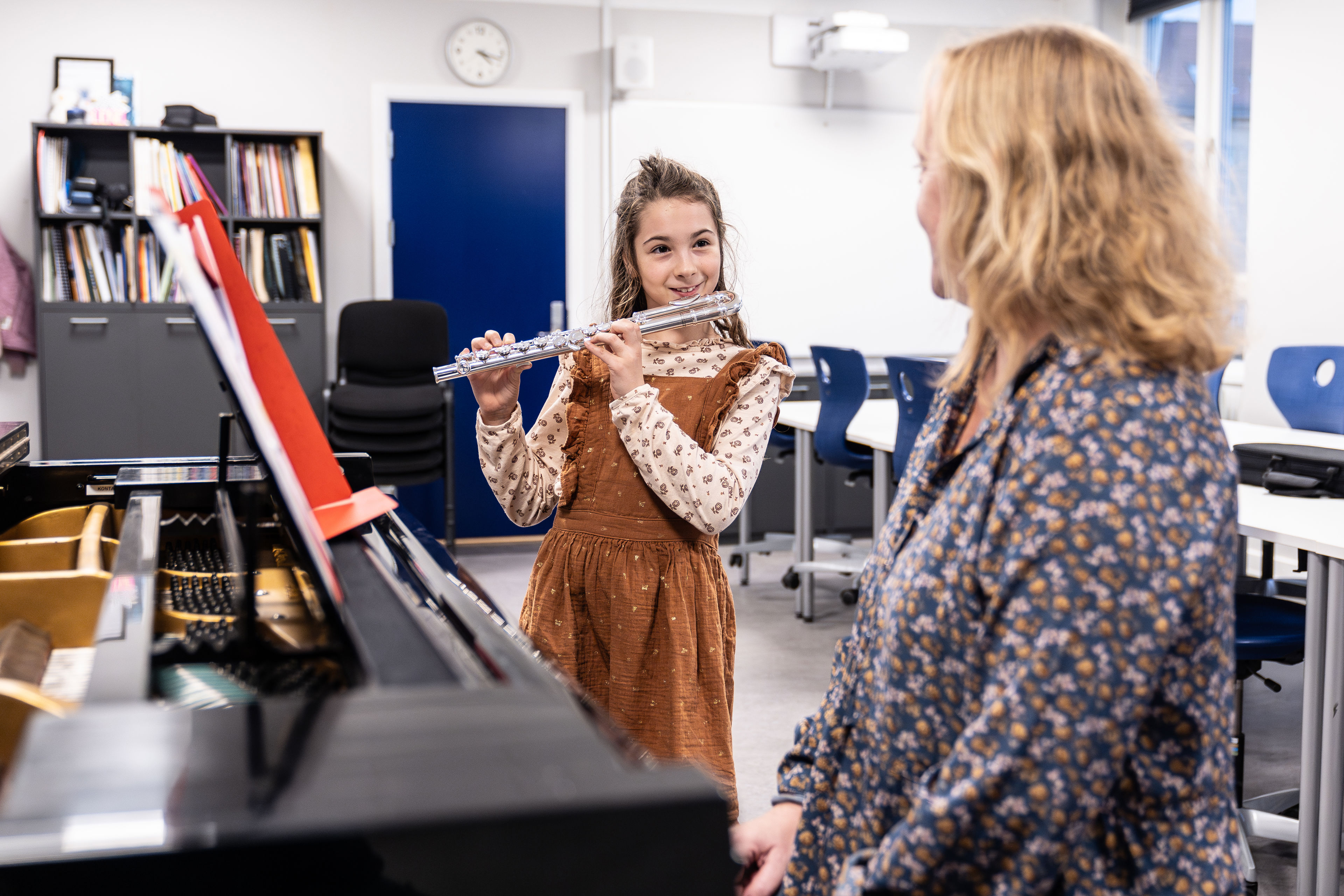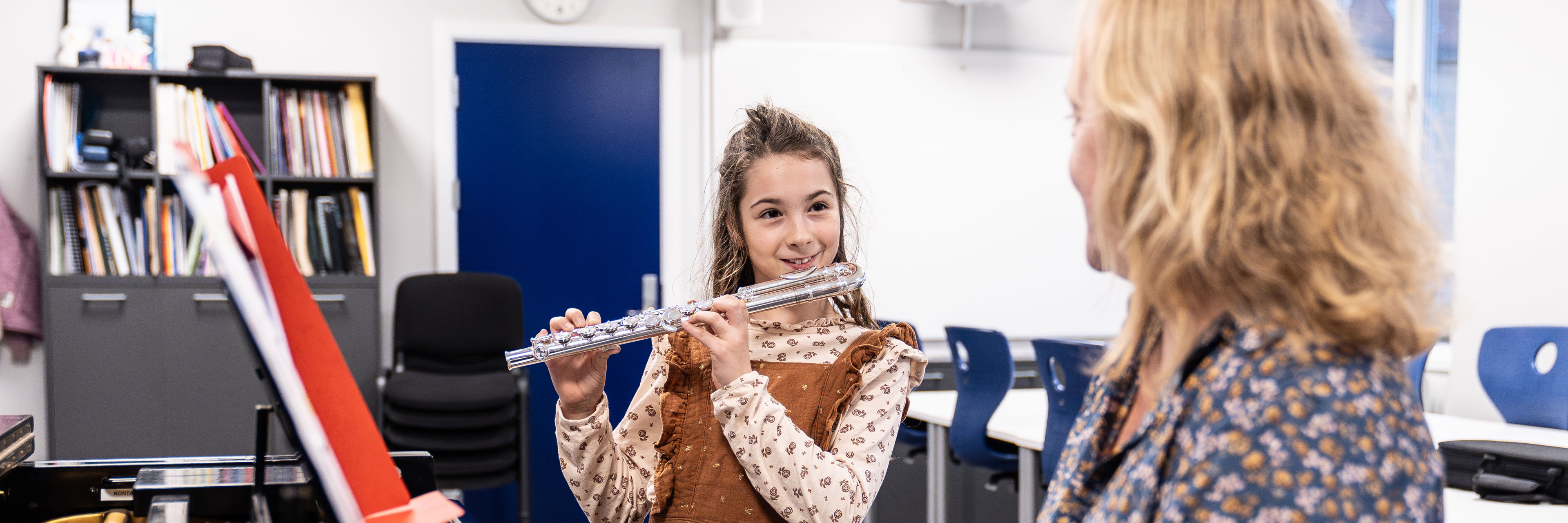 Du kan allerede starte på tværfløjte når du går i 2. klasse og efter kort tid kan du starte i musikskolens Spire Blæs.